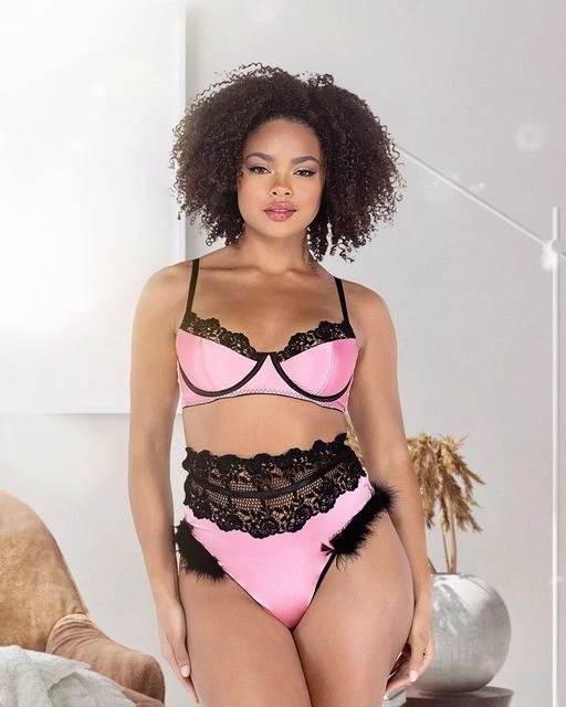 This two-piece embroidery and satin bralette with underwire support and high-waisted shorts with faux fur trim is such a beautiful design for the best sexy and seductive look. If you want a two-piece that makes you feel top-notch but provides coverage at the same time, this lingerie set is for you. The embroidery satin bralette with underwire support will give your breast the right lift and desirable shape. And the high-waisted cheeky shorts with faux fur trim will provide you with a perfectly plump bottom.