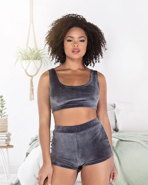 The top combines a sports bra and cropped top paired with a boy short style bottom, one of the most popular style. When it is snowing outside or gloomy, and you had a long day, hit the sofa or bed with this two-piece short set with a hot cup of chocolate in your hand. Dim the lights, light a few candles, get a glass of wine, put on your favorite show, and enjoy your night comfortably with our 2PC Super Soft and Cozy Short Set.