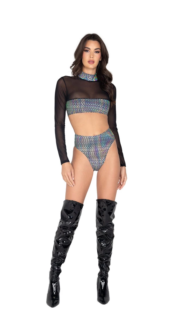 Sparkle like a badass superhero is these bikini style shorts that are sure to get plenty of attention. These cuties boast an ultra cool holographic fabric that shimmer and sparkles in the lights of the dance floor. In three distinct color options, you can’t go wrong! Choose from black, hot pink, or multi and pair with one of our hot matching tops or your own personal fave. These are so versatile, you’ll have endless mix and match options. These shorts feature a trendy and flattering high waisted rise, with a cheeky high leg cut that makes your legs look like they go on for miles!