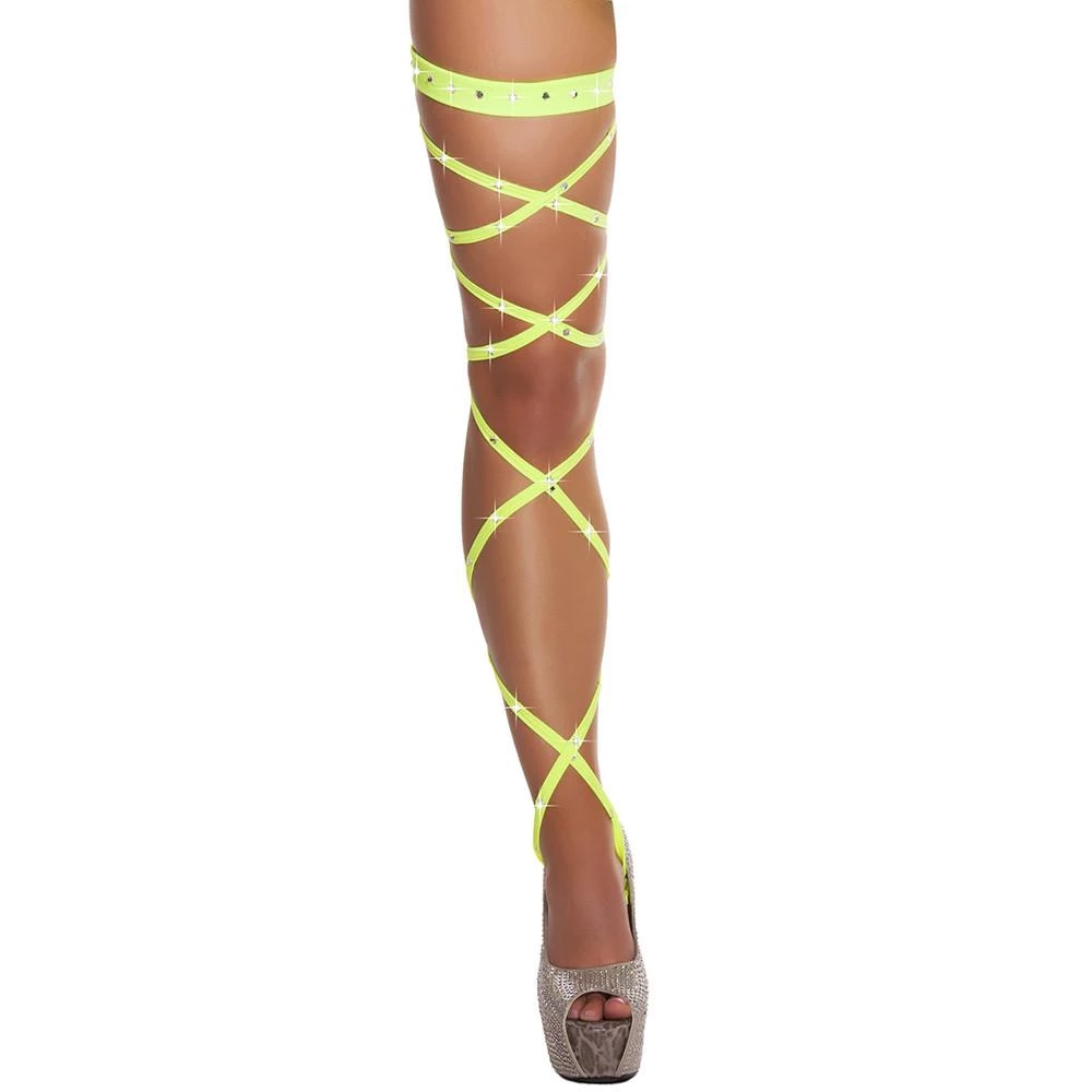 100” Solid Leg Strap with Attached Garter & Rhinestone Details