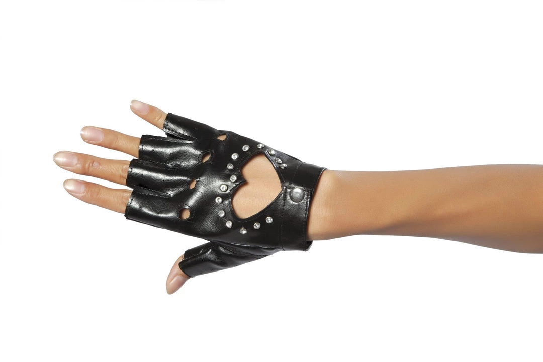 Pair of Gloves with Cut-out Heart and Stones