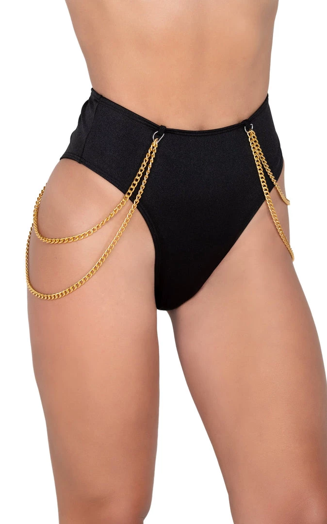 Show off your style in a versatile look that will compliment your body and can be equally at home at a rock show or a glamorous yacht. Stand out from the crowd in these hot bottoms that are sure to raise the temperature of the room and make them sweat. These bottoms feature a stylish and chic high waisted rise, with super high legs to show off a mile of thigh and a cheeky amount of derriere. Two gold chains on each side drape seductively, further enhancing and accentuating all your feminine curves. Available in four beautiful colors, you’re sure to find the perfect pair for all your summertime looks.